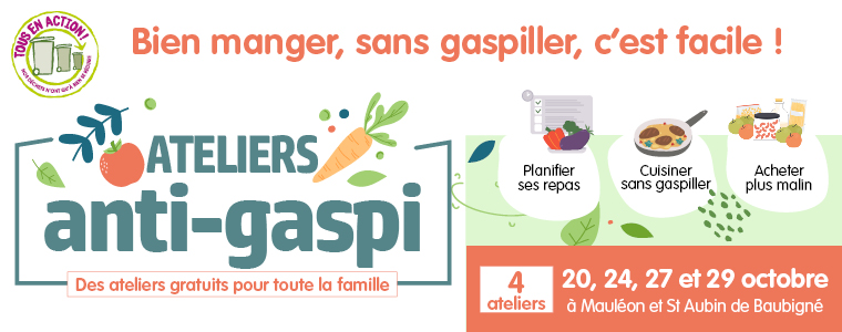 Dans le cadre de sa politique de prévention des déchets, l’Agglomération du Bocage Bressuirais propose une série d’ateliers gratuits et conviviaux animés par Lucie Costil, diététicienne (Cuisinez Libéré), pour apprendre à mieux s’organiser, cuisiner malin et limiter le gaspillage alimentaire.