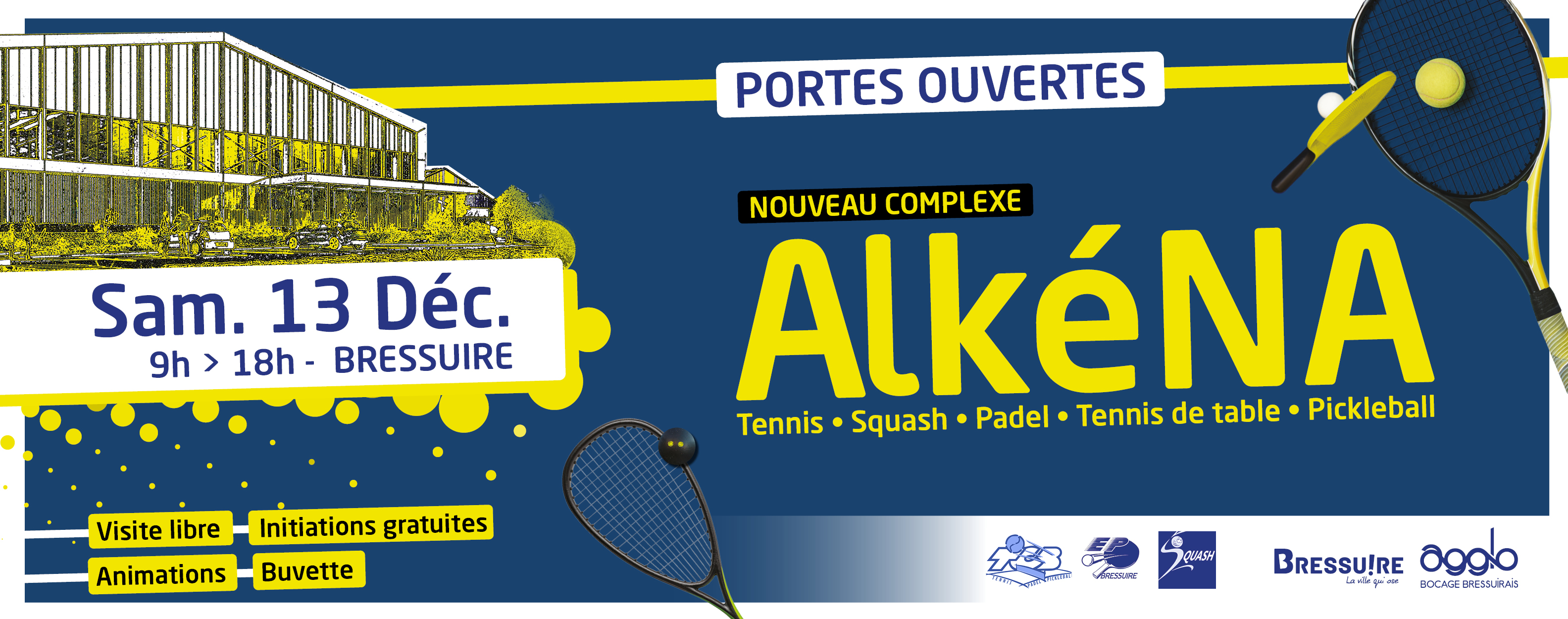 L’Agglomération du Bocage Bressuirais, la Ville de Bressuire et les clubs concernés ouvrent les portes du complexe dédié aux sports de raquettes, AlkéNA, le samedi 13 décembre, de 9h à 18h.