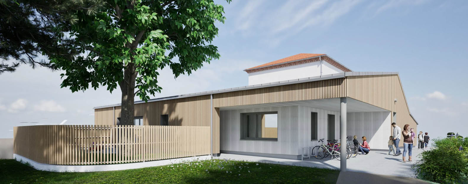 Ce projet permettra la création d’un véritable pôle de services aux familles, à proximité de la bibliothèque et du parc. La halte-garderie, aujourd’hui ouverte deux jours par semaine, sera transformée en crèche accueillant jusqu’à 12 enfants chaque jour. Une salle mutualisée accueillera les assistantes maternelles et les actions du Relais Petite Enfance, ainsi que des temps Parents-Enfants. Le projet intègre également l’accueil périscolaire et de loisirs.