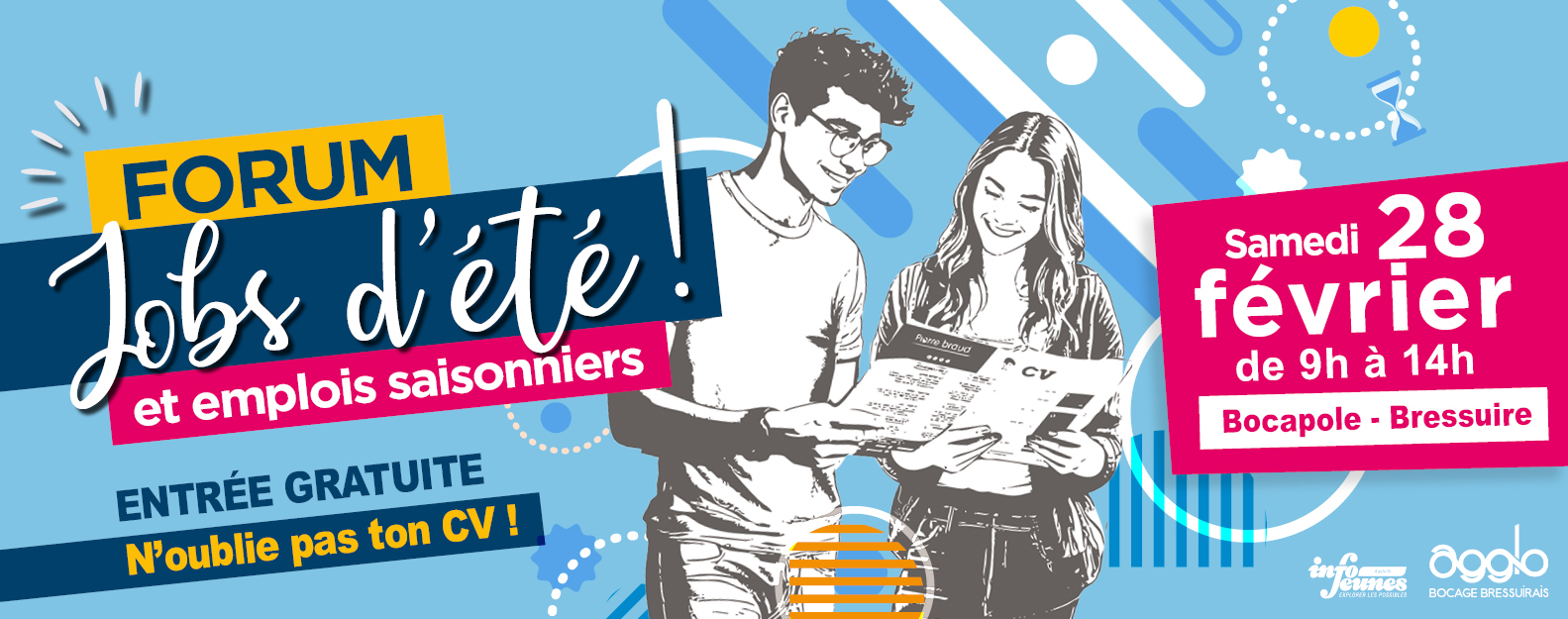 Afin d’accompagner les jeunes dans leur recherche d’un emploi pendant la saison estivale, l’Agglomération du Bocage Bressuirais, via son service jeunesse, organise le  « Forum Jobs d’été et emplois saisonniers » à Bocapole - Bressuire. Cet évènement gratuit, réunis chaque année une trentaine de partenaires, publics ou privés.