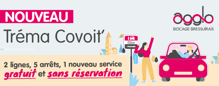 Courant novembre 2025, 2 lignes de covoiturage dynamique seront lancées en Bocage Bressuirais : Bressuire/La Chapelle Saint-Laurent et Bressuire/Moncoutant-sur-Sèvre en passant par Terves et Chanteloup. Et l’année prochaine, une 3ème ligne Bressuire/Nueil-Les-Aubiers sera mise en place.